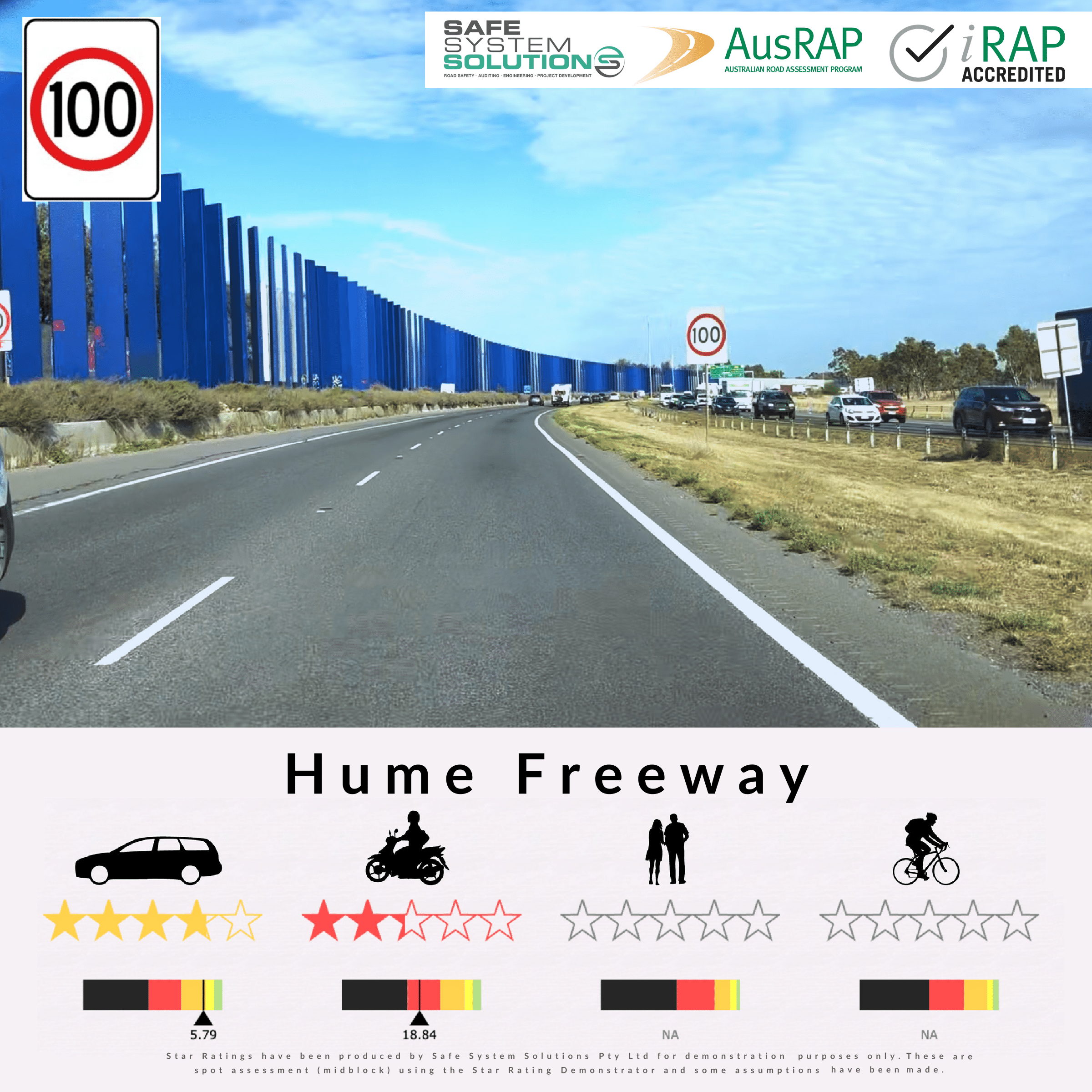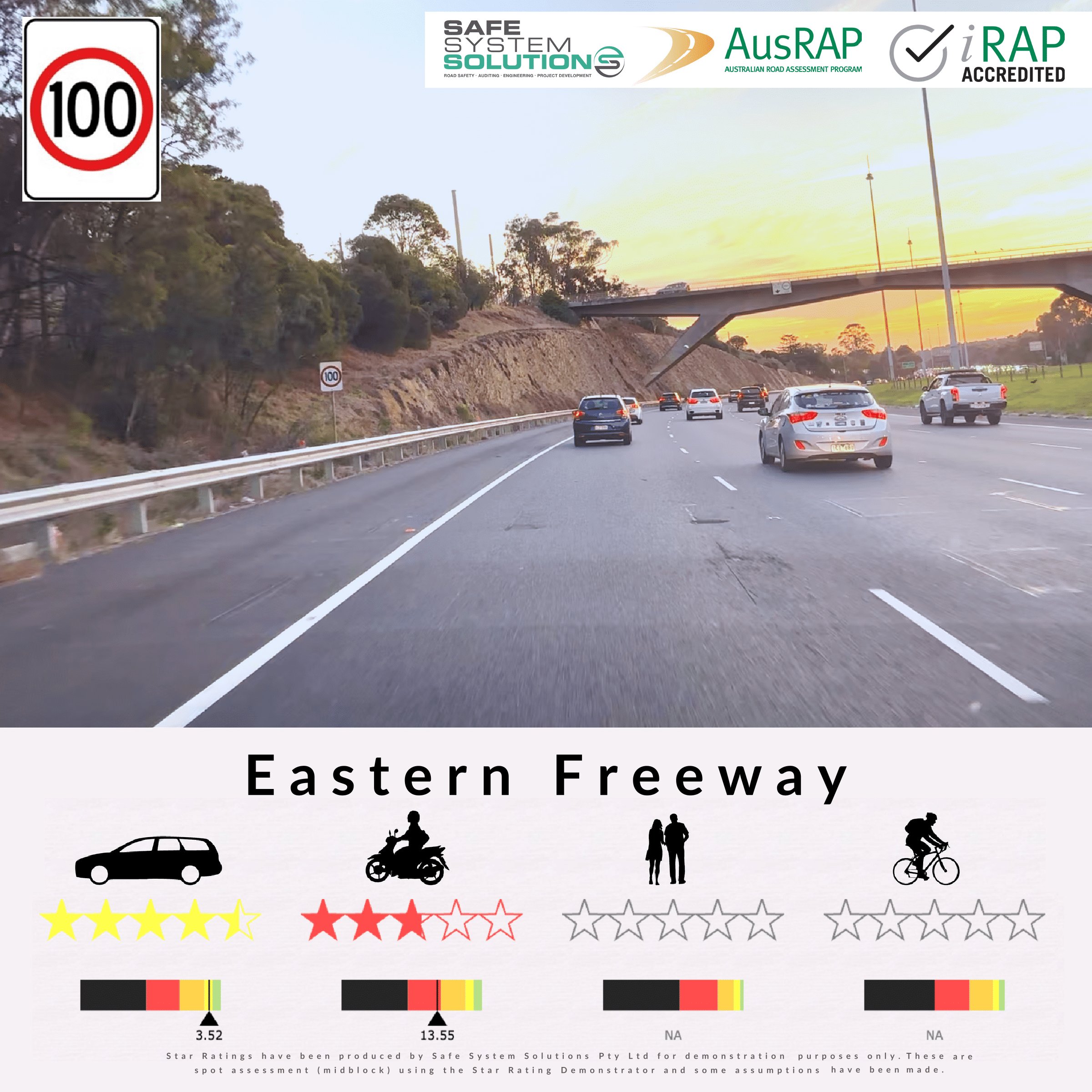 Same speed limit. Very different star ratings. All legally 100km/h.