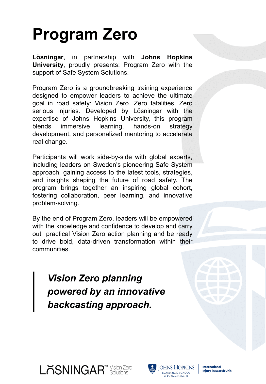Join us in February 2026 for Program Zero, the in-person short course at Johns Hopkins University in Washington DC, and experience world leading Vision Zero thinking in action.