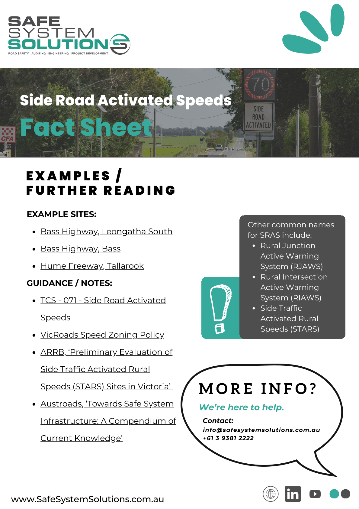 Side Road Activated Speeds [also known as RIAWS, RJAWS and STARS] are one of the more promising tools we have for tackling high risk rural and regional intersections. The concept is simple. Slow the major road when a vehicle is detected on the side road and bring speeds down at the exact moment of conflict. But the details get very complicated.